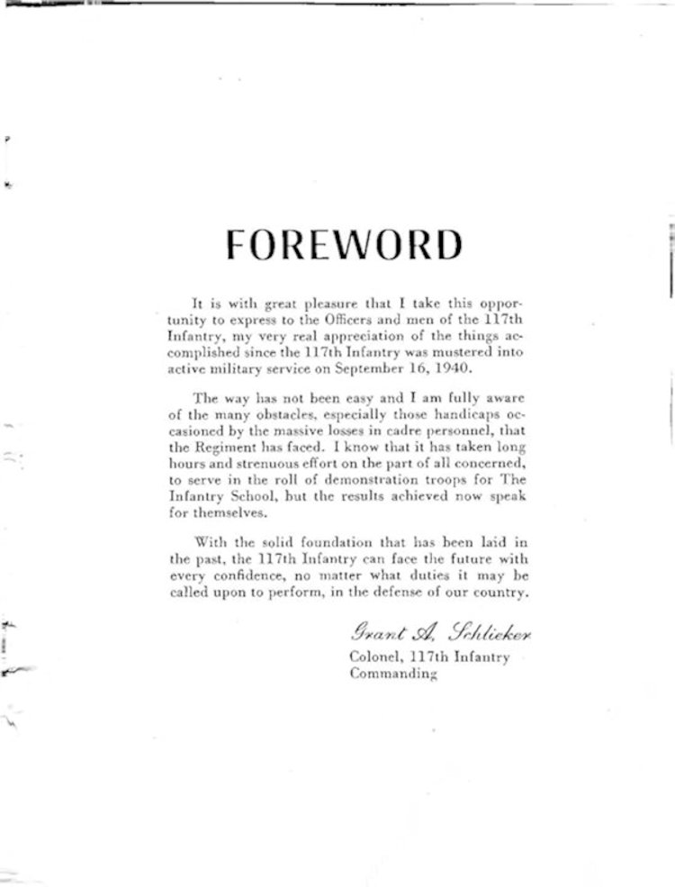 Special thanks to Ryan Lord of Chicago, Illinois, for submitting this yearbook on the 177th Infantry Regiment training at Fort Benning, Georgia. We are still looking for other yearbooks for the 117th Infantry Regiment during the World War II era.