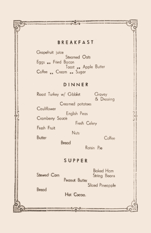 32nd Field Hospital 1943 Christmas Menu