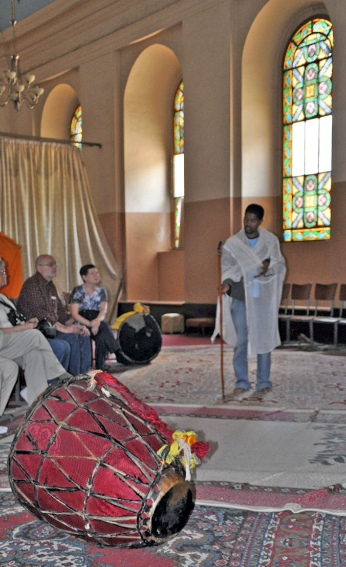 Empress Zewditu of Ethiopia was crowned at this Cathedral in 1917, and Emperor Haile Selassie was crowned there in 1930, and it became a pilgrimage site for Rastafarians. The Cathedral has a museum, and an Imperial throne is on display as is the stained glass works of artist Afewerk Tekle. Given the reason why the cathedral was named, it displays weaponry used in the wars against the Italians including curved swords and tridents and giant helmets made from the manes of lions.