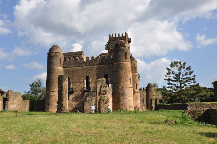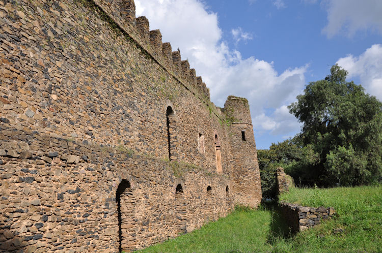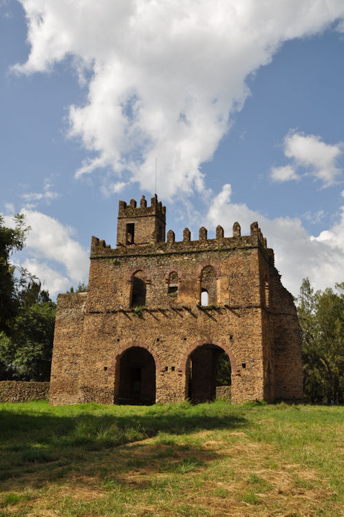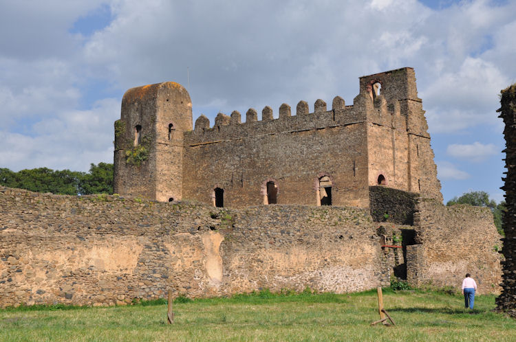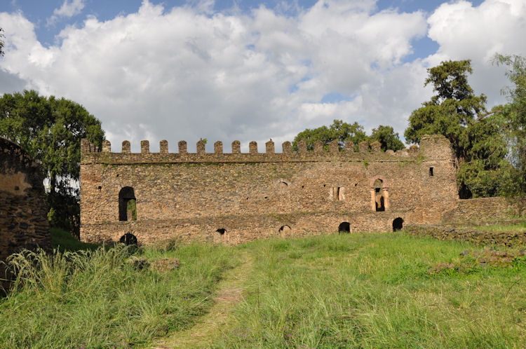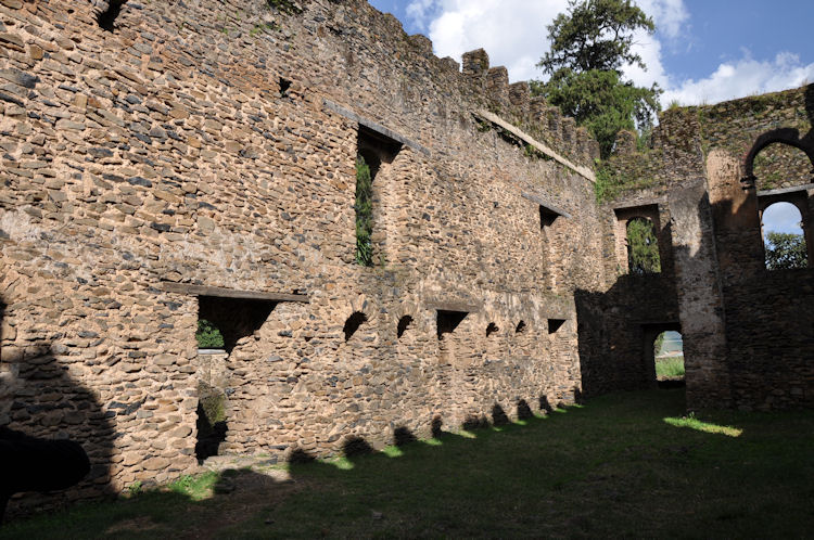 The main feature of Gondar is Fasil Ghebbi or the Royal Enclosure. It is a fortress-enclosure with high stone walls.. It served as the home of Ethiopia's emperors in the 17th and 18th centuries.This complex of buildings includes Fasilides castle, Iyasu's Palace, Dawit's Hall, a banqueting hall, stables, Mentewab's Castle, a chancellery, library and three churches: Asasame Qeddus Mikael, Elfin Giyorgis and Gemjabet Mariyam.