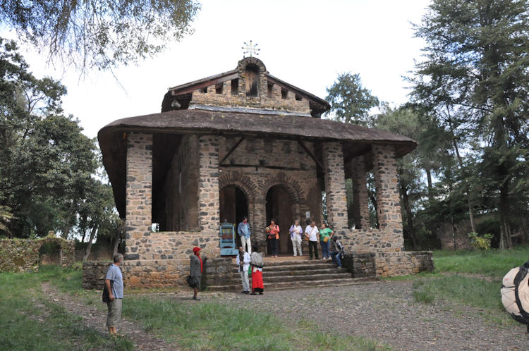 When the Mahdist Dervishes of the Sudan sacked the city of Gondar in 1888, they burned down every church in the city except Debre Birhan Selassie. According to legend, when the Mahdist soldiers approached the church, a swarm of bees descended on the compound of the church and kept the soldiers back, and the Archangel Michael himself stood before the large wooden gates with a flaming sword drawn.