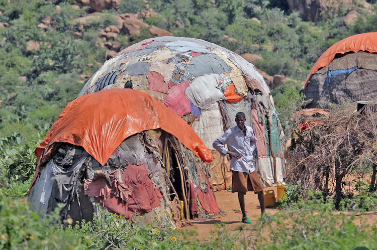 Oromo Hut in a valley near Babile, Ethiopia.
