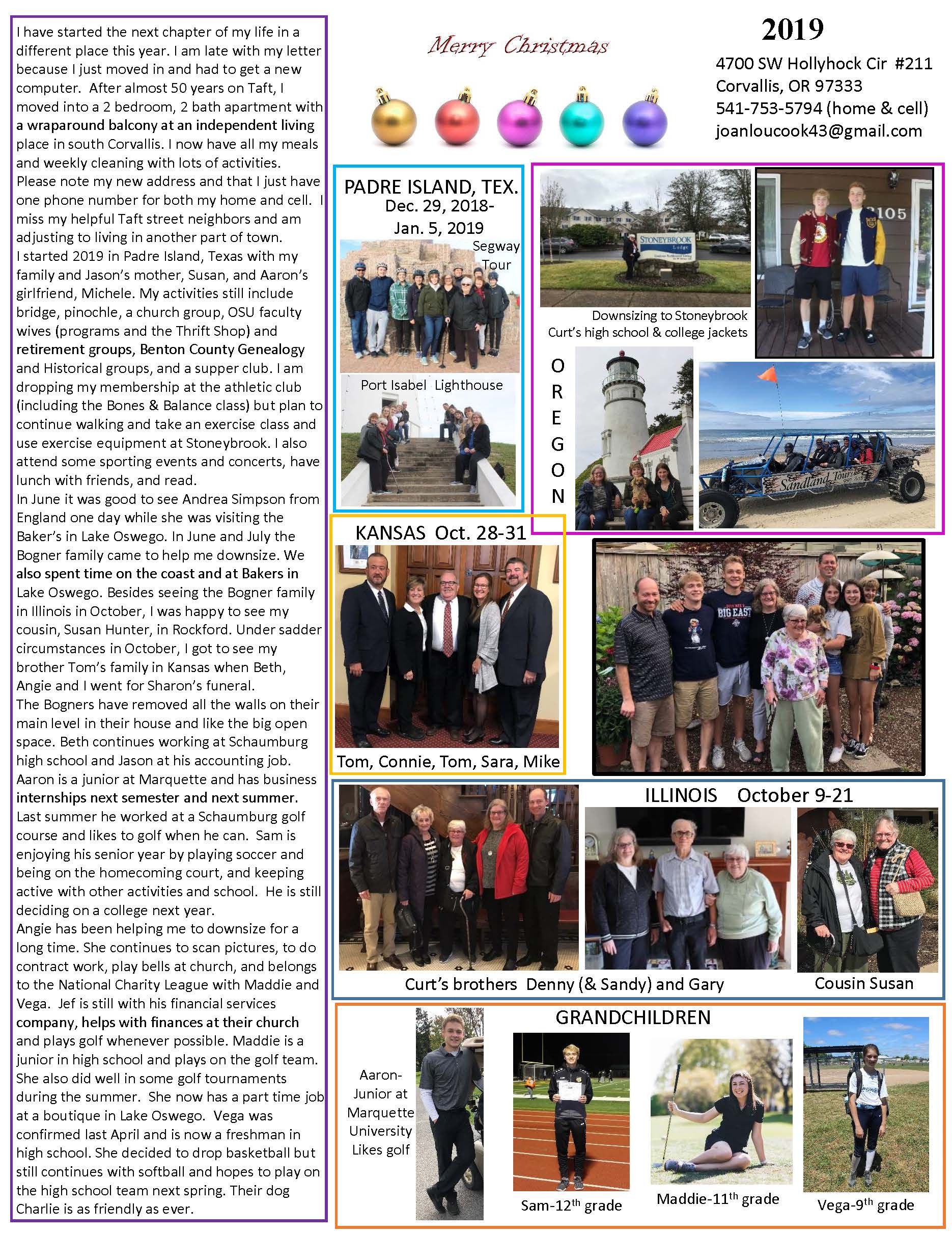 We both graduated from Augustana College in 1965 (Joan also graduated from Black Hawk) and Curt graduated from the University of Iowa with a PhD in computer science in 1970. Curt retired as a Professor of Computer Science at Oregon State University in 2003 after 33 years. As professor emeritus he still has an office at OSU and does a little consulting. He continues attending OSU events, playing tennis, slow pitch softball, and some basketball, and likes to read, garden, ride his bike, and collect stamps.
