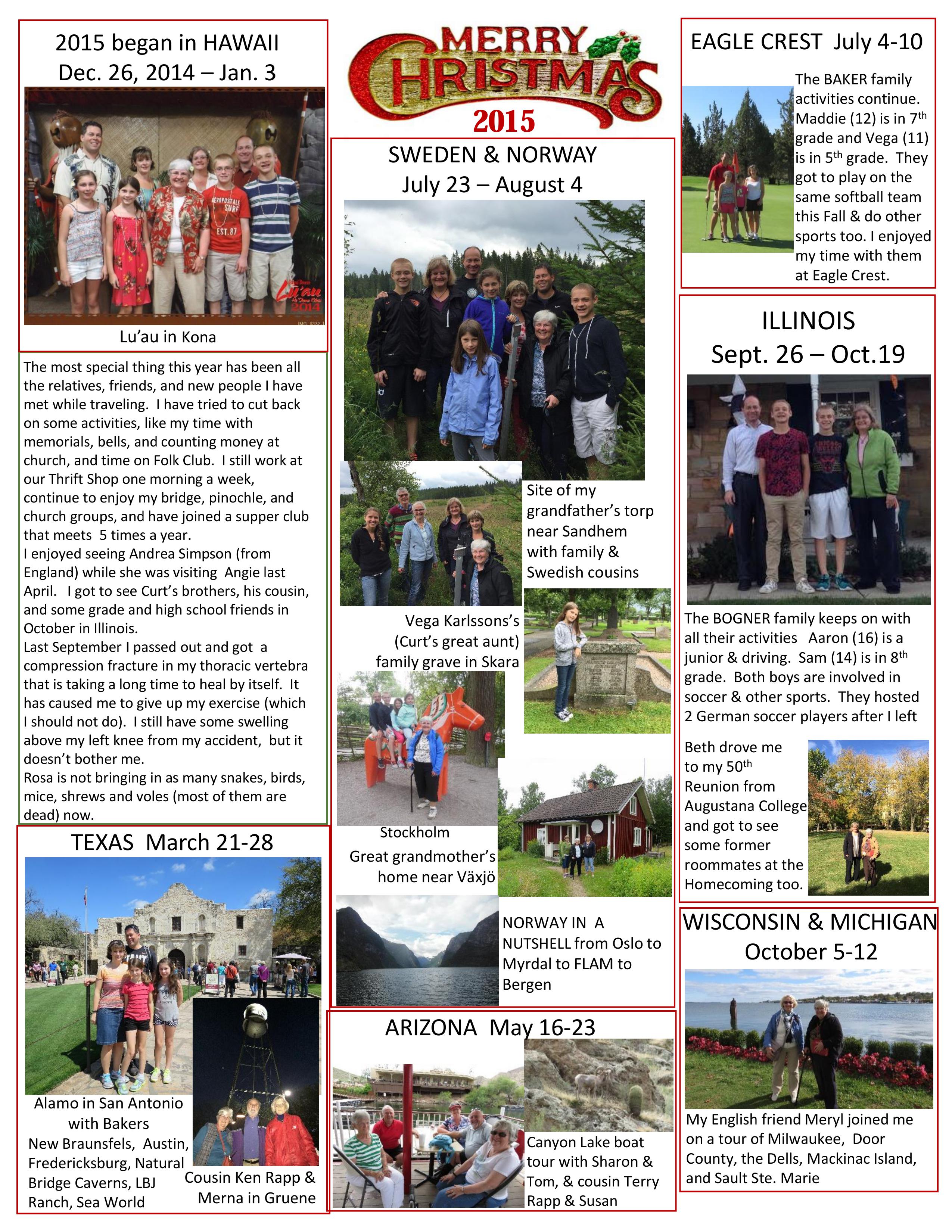 We also keep busy with our children and grandchildren. In August of 2005, we celebrated our 40th wedding anniversary. We have two daughters – Beth (1969) and Angie (1972). Beth graduated from Augustana in 1991 and married a fellow graduate, Jason Bogner, in 1996. They live in Schaumburg, IL, and have Aaron (7) and Sam (5). Angie graduated from Willamette University in Salem, OR in 1994 and married OSU graduate, Jef Baker, in 1999. They live in Lake Oswego, OR, and have Maddie (3) and Vega (22 months).