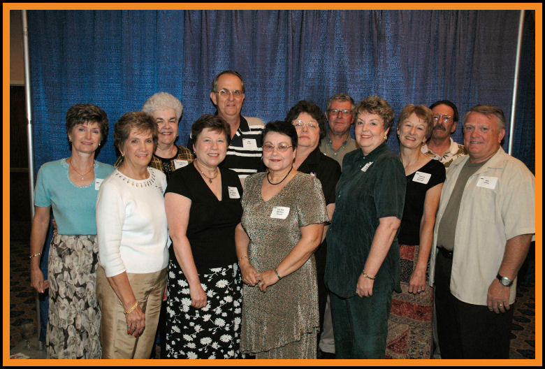 Left To Right: Karen Eddleman Murphy, Sharron True Ripka, Carol Wilson Miller, Betty McLaughlin Hagberg, W. Don Stotts, Lily Ann Snyder Howell, Judy Marx Downey, Dave Ray, Caroline Malinowski Jones, Thersa Larson Rickets, Warren Rowe, and Bob Jones